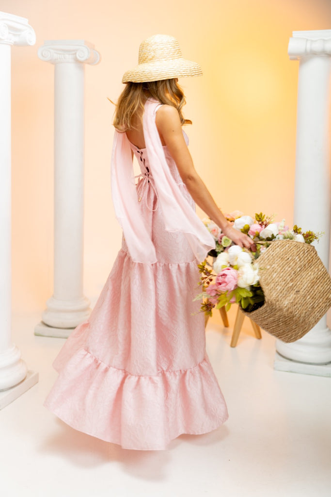 The Emily Dress in Light Pink Brocade