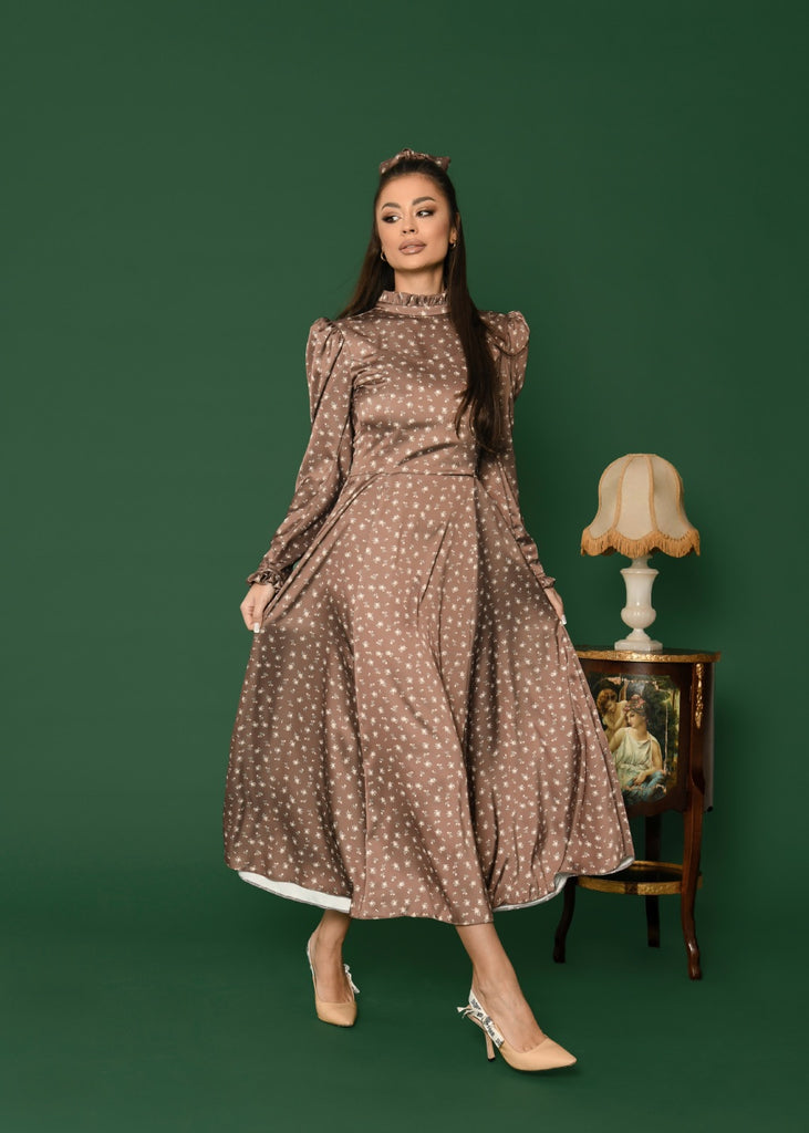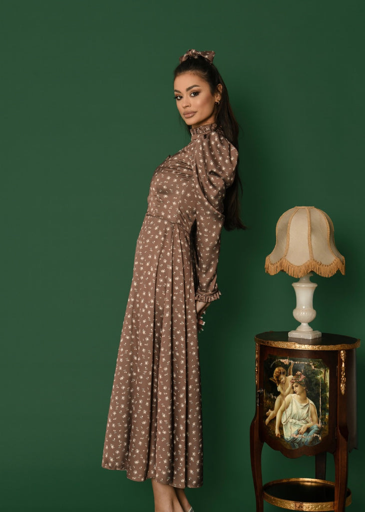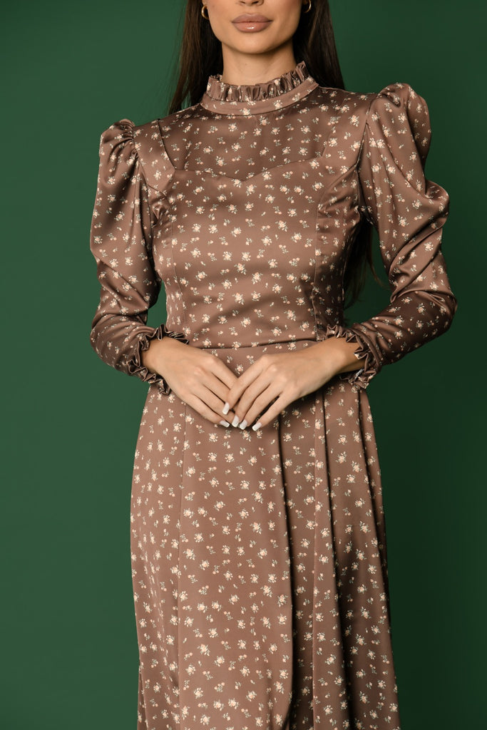 The Julliiet Dress in Brown Floral Print - Brown / Small-Medium is backordered and will ship as soon as it is back in stock.