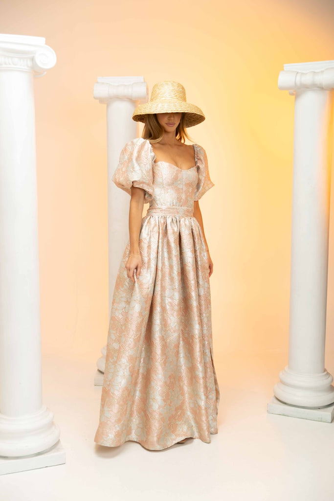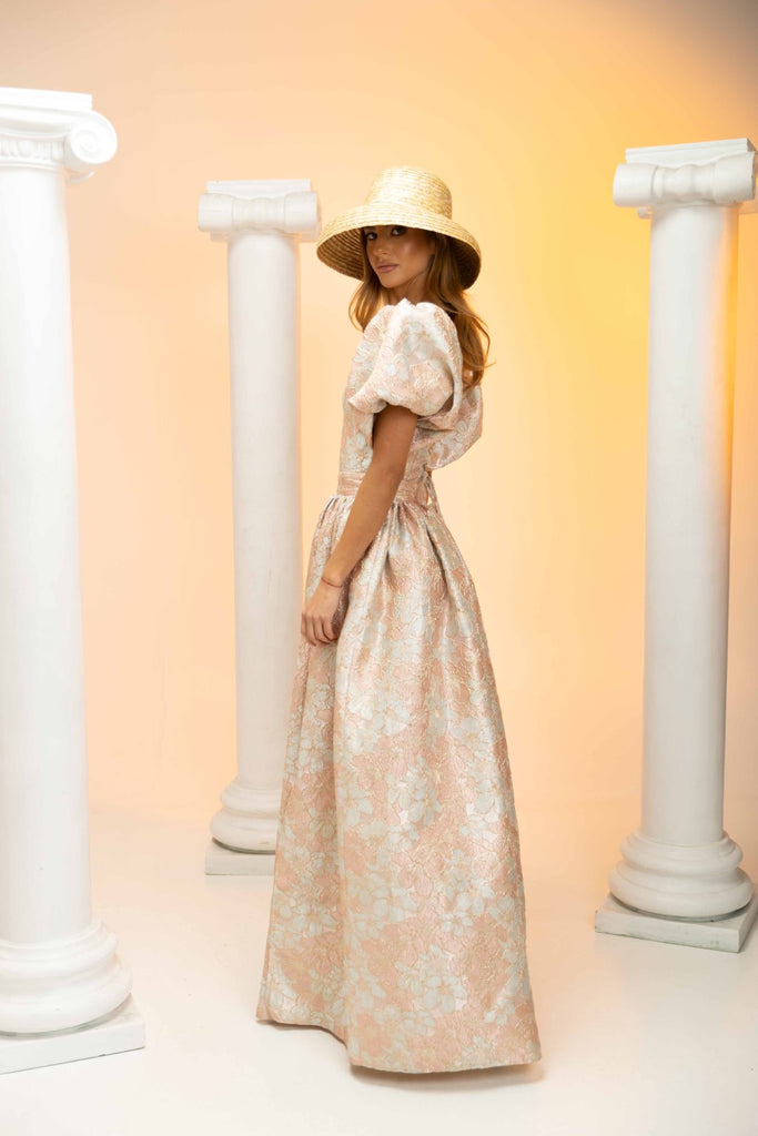The Masha Dress is stunning creation made in our floral luxury brocade.